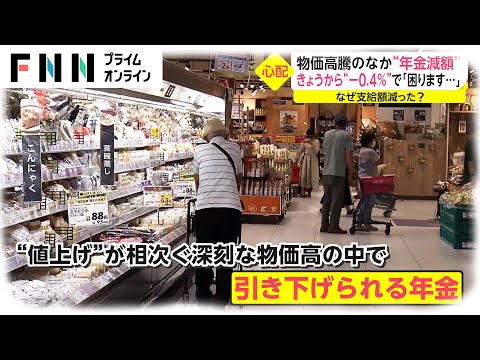 食料品などの値上げが相次ぎ、家計が厳しさを増す中、15日から支払われる年金が減額された。物価が反映されるはずの年金の支給額が、なぜ今、引き下げられるのでしょうか。FNNプライムオンラインhttps://www.fnn.jp/